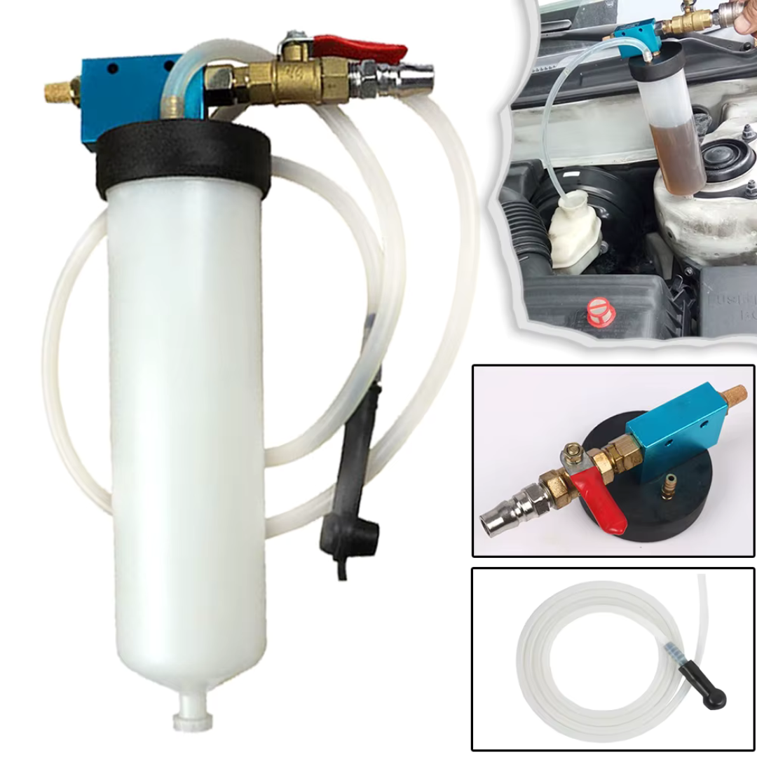 Este purgador avanzado permite que el usuario logre extraer el aire atrapado y el fluido viejo de forma sencilla, lo que permite renovar el sistema de frenado de automóviles y camiones mediante el uso de aire comprimido para generar vacío constante.